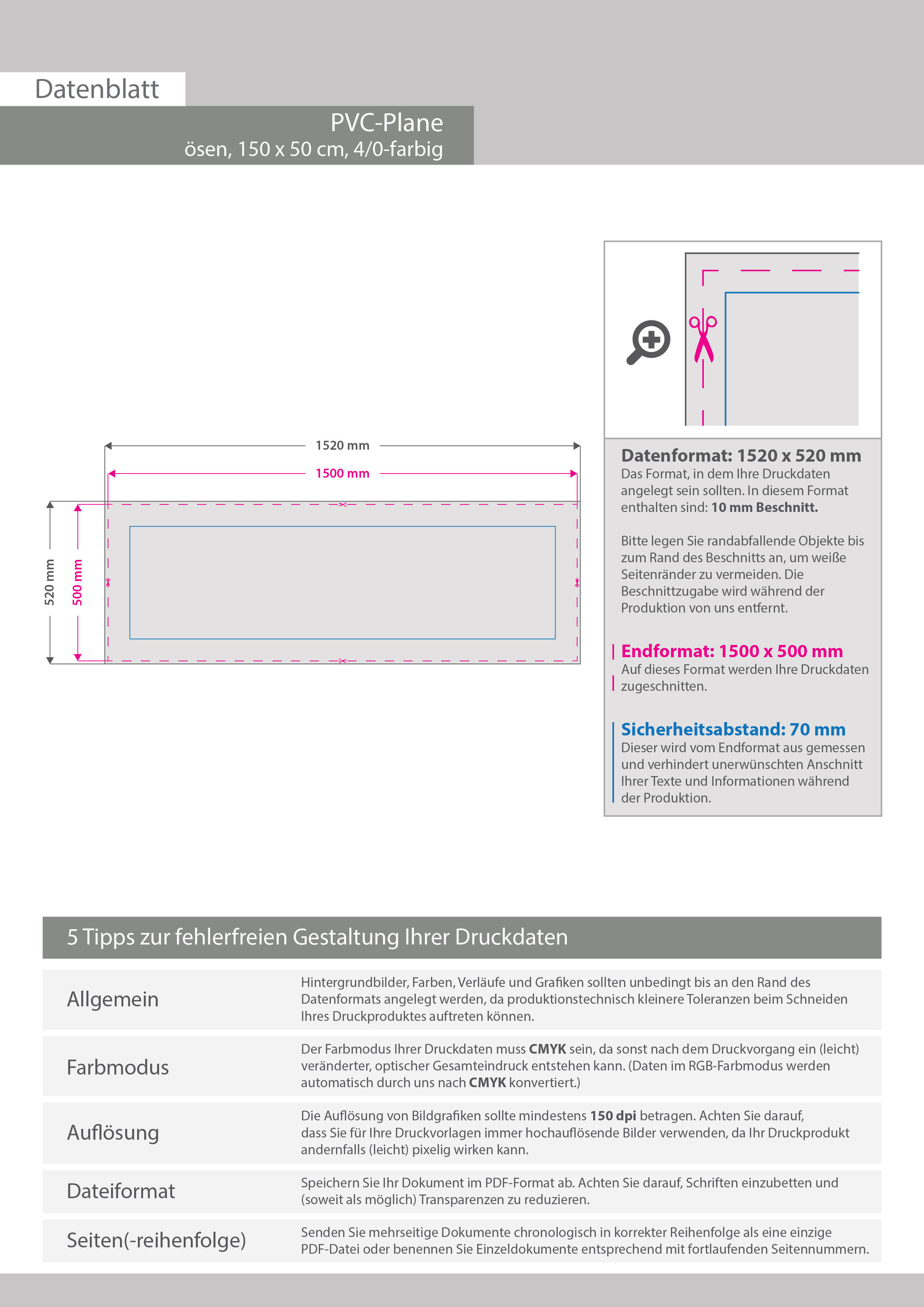 Hochwertige PVC-Plane 150 x 50 cm, 4/0-farbig bedruckt, Ösen im Abstand von 50 cm oben und unten